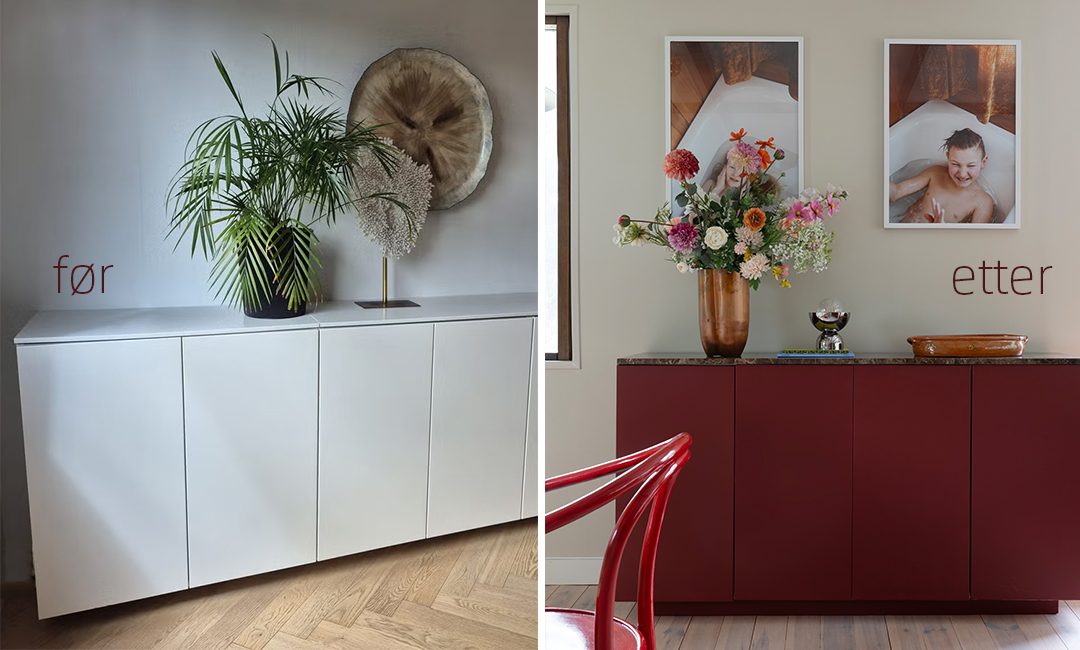 Vi elsker å se hvordan man kan trylle med maling! Denne gangen er det et IKEA-skap som har fått nytt liv med fargen 5933 Årgang.