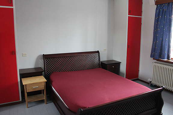 Drømmen om et dypt rødt soverom er gått i oppfyllelse. Her er alle vegger og tak malt i herlige rødtoner. Vegger og skapdører i den rød-rosa fargen NCS S4040-R10B, og den lysere rosa i tak og nisje er NCS S3020-R10B.